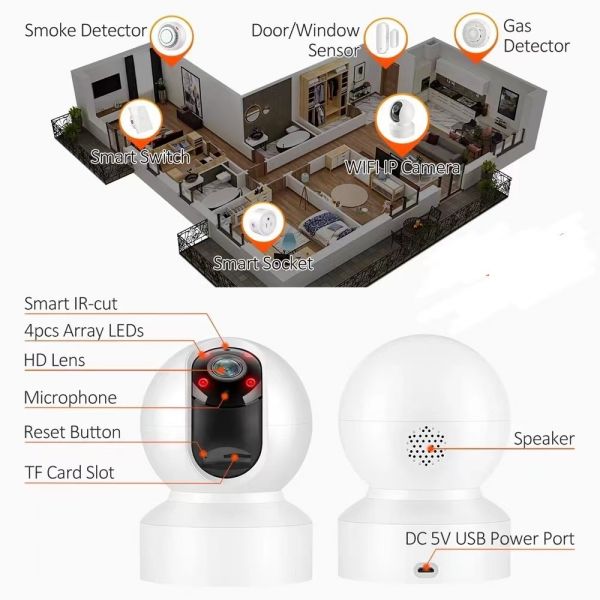 ● Smart WIFI camera; ●APP: Casacop ● 2.0/3.0 MP optional; ●Adding devices by scanning code or connecting network directly, or by AP hotspot; ●Support voice monitoring, intercom, motion detection and alarm; ●Support cloud storage; ●Support IOS / Android mobile phone remote monitoring; ●Wired network port RJ-45 10-100MB, wireless network 802.11b/g/n; ●Power supply: DC 5V 1.5A, ●Working temperature: -20℃-+55℃; ● Support 8-128G TF card storage; ●Waterproof Index: only for indoor |