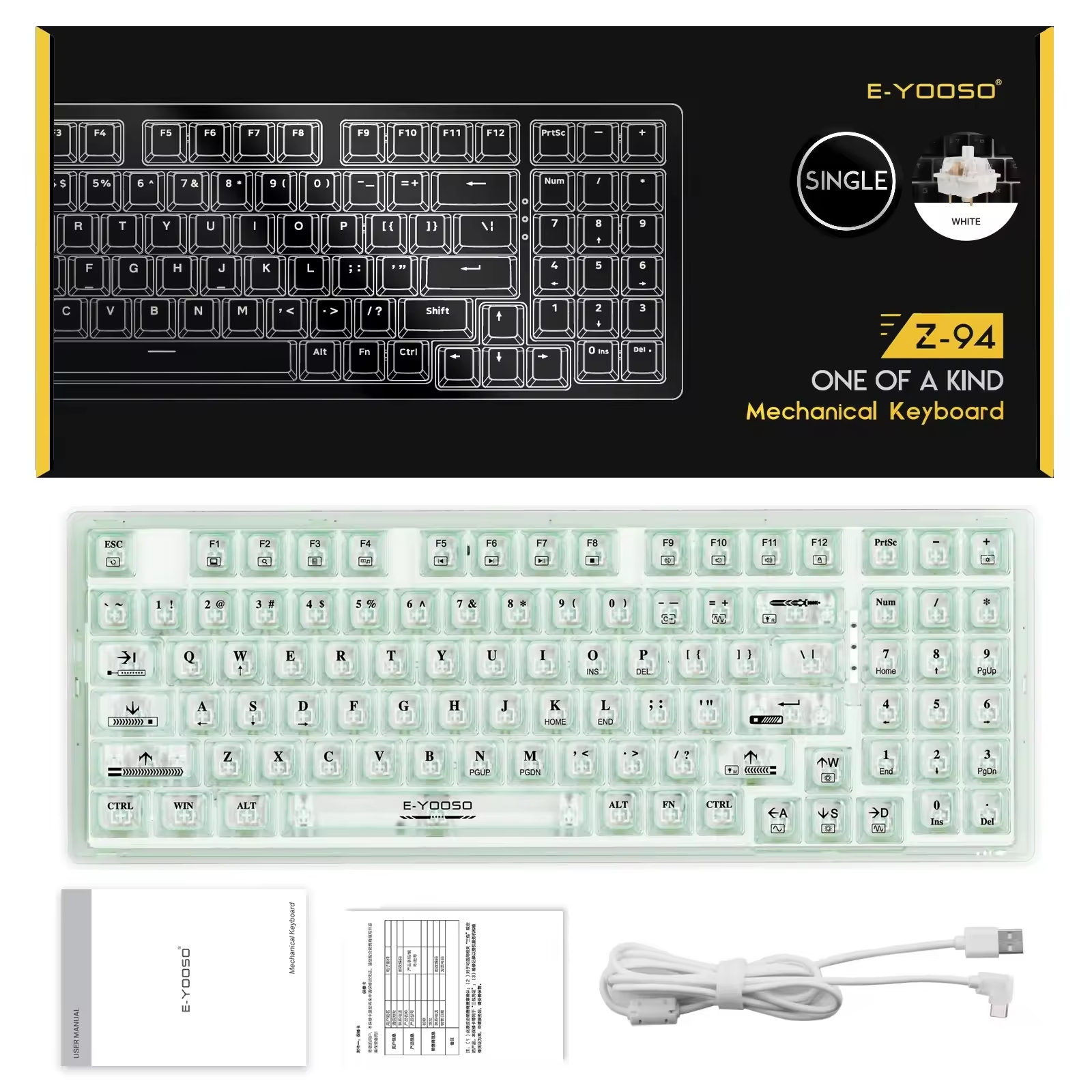 E-YOOSO Z-94 95% 94 key computer keyboard transparent purpal for women pc led pbt lucency transparent gaming mechanical keyboard