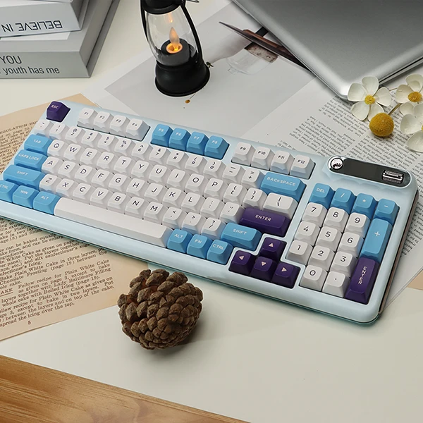 • Multi-function OLED Smart Display: KZZI Z98 keyboard has OLED screen and metal knob, making this wireless mechanical keyboard fun! Smart Display functions: custom GIF, connection modes, battery level, WIN/MAC, RGB setting. You can customize your own screen. The ergonomic keyboard can respond to the simultaneous press of multiple keys, helpful for using hotkeys and real-time games.