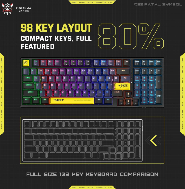New ONIKUMA G38 Three Color Wired Mechanical Keyboard, 98 Keys Gamer For PC Laptop