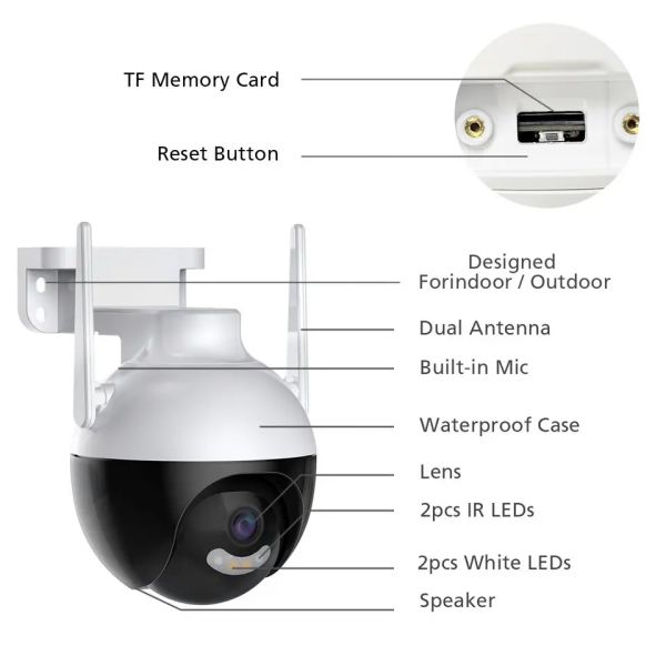 High-definition picture quality, wifi connection, no wiring required, mobile phone remote viewing, cloud storage, voice intercom, mobile tracking, Bluetooth distribution network, PTZ control, shared camera supports multiple mobile phone connections, full-color night vision, binocular gun ball linkage 360° no dead ends, outdoor waterproof