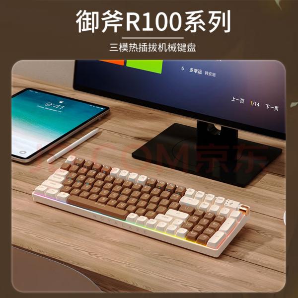 ROYALAXE R100 Wireless Mechanical Keyboard, Gateron G Pro 3.0 Yellow Switch, Hot Swappable Wired/Bluetooth/2.4G Wireless Keyboard with RGB Light for Windows & Mac, PBT Keycaps, Whale Blue