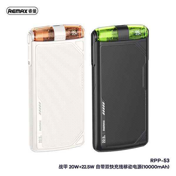 REMAX Armour Series PD 20W+QC 22.5W Power Bank with 2 Fast Charging Cables 10000mAh RPP-53