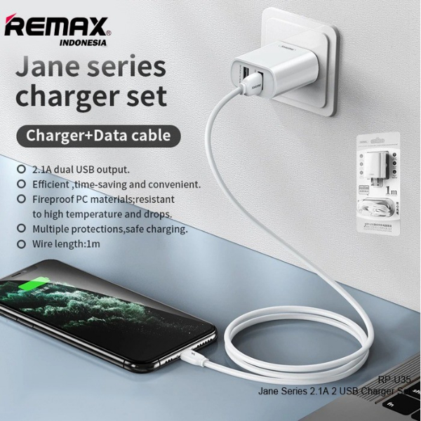 REMAX RP-U35-REMAX Jane Series 2.1A 2USB Charger Set RP-U35 Micro EU