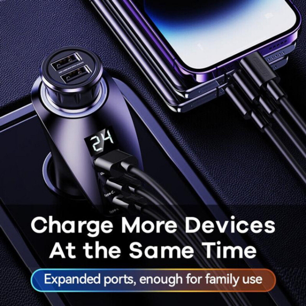 2. The vehicle charger carries a cigarette lighter adapter, and another charger can be added;