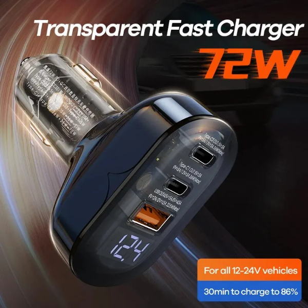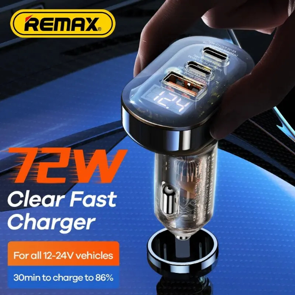 REMAX RCC351-Cybo Series 72W PD+QC Transparent Fast Car Charger with Digital Display RCC351