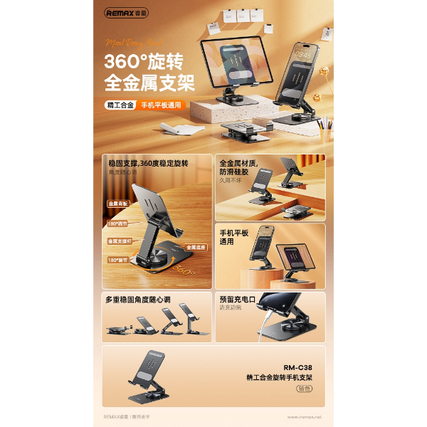 Full metal material, stable support with 360 ° rotation for both smartphones and tables
