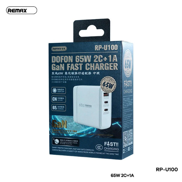 REMAX RP-U100 DOFON SERIES 65W 2C+1A GAN FAST CHARGER (65W)