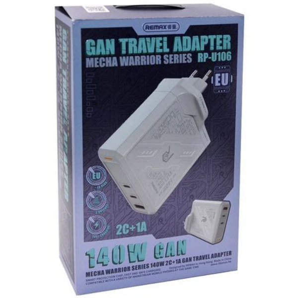 REMAX RP-U106 MECHA WARRIOR 140W GAN ADAPTER (140W) (2C+1A), FAST CHARGER