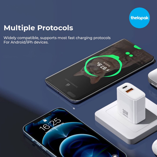 "Charger USB ini dapat digunakan untuk mengisi baterai berbagai macam gadget Anda. Charger ini terdiri dari 2 output yaitu output USB C dan output USB A. Dengan daya maksimal hingga 30 W, charger ini dapat digunakan untuk mengisi 2 buah gadget sekaligus.