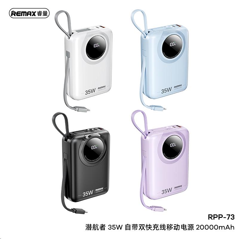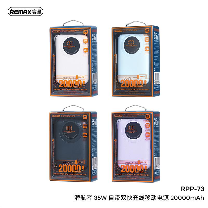 REMAX Scuba Series 35W Power Bank with 2 Fast Charging Cables 20000mAh RPP-73