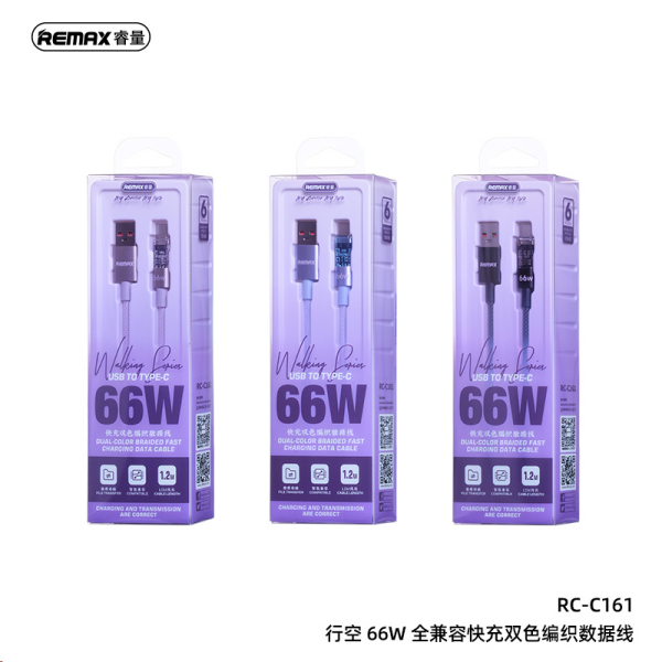 REMAX Walking Series 66W All-compatible Dual-color Braided Fast Charging Data Cable RC-C161 A-C