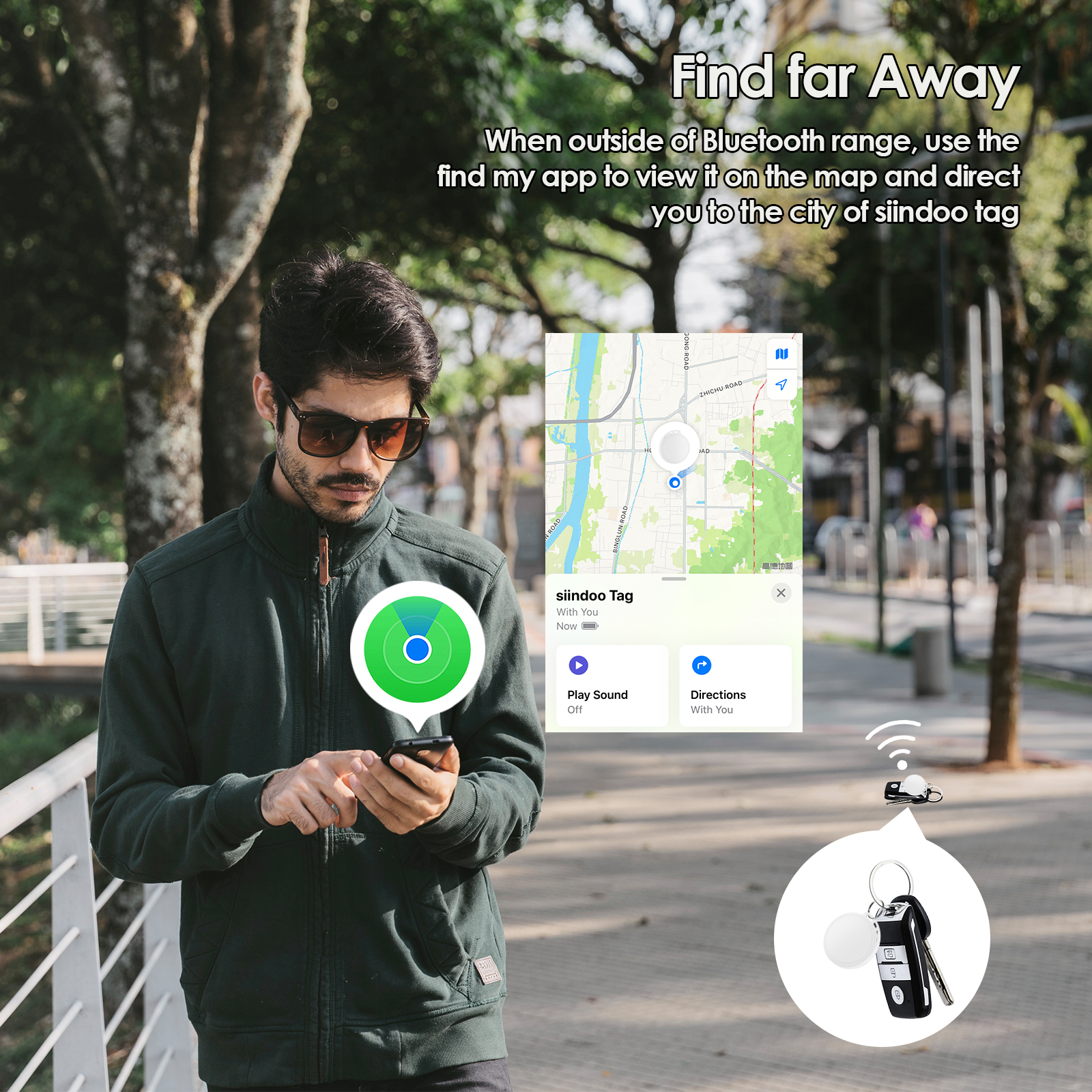 Precision Finding | Precision Finding compatible with iPhone 11, iPhone 11 Pro, iPhone 11 Pro Max, iPhone 12, iPhone 12 mini, iPhone 12 Pro, iPhone 12 Pro Max, iPhone 13 mini, iPhone 13, iPhone 13 Pro, iPhone 13 Pro Max, iPhone 14, iPhone 14 Plus, iPhone 14 Pro, iPhone 14 Pro Max, iPhone 15, iPhone 15 Plus, iPhone 15 Pro and iPhone 15 Pro Max. Testing conducted by Apple in March 2021 using preproduction AirTag units and software paired with iPhone 11, iPhone 11 Pro, iPhone 11 Pro Max, iPhone 12 mini, iPhone 12, iPhone 12 Pro and iPhone 12 Pro Max units running preproduction software. Battery life based on an everyday use of four play sound events and one Precision Finding event per day. Battery life varies with usage, environmental conditions, replacement battery manufacturer and many other factors; actual results will vary. |