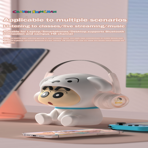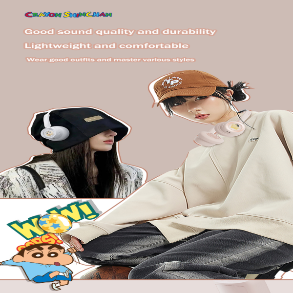 | Product Name: Crayon Shinchan Bluetooth headset Product model: TV01 Product size: 185 * 140 * 62mm Product material: ABS+PC+aluminum alloy Bluetooth version: Bluetooth 5.3 Transmission distance: ≥ 10m (barrier free) Battery capacity: 400mAh Music playback time: 12h Horn size: 30mm Horn sensitivity: 105dB ± 3dB Frequency response range: 20Hz~20KHz Charging interface: Type-C |