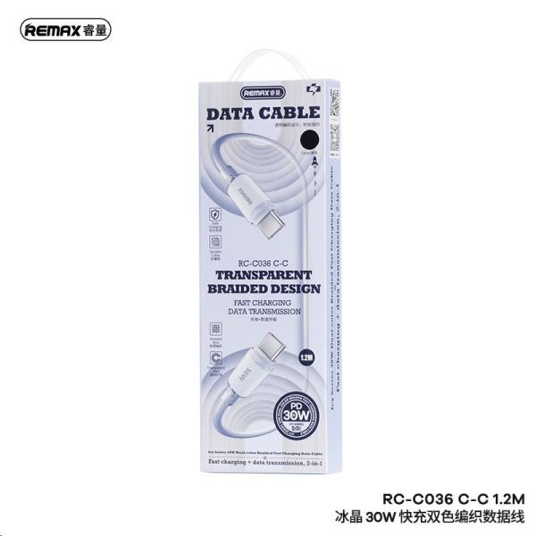REMAX Icy Series 30W Dual-color Braided Fast Charging Data Cable RC-C036 C-C