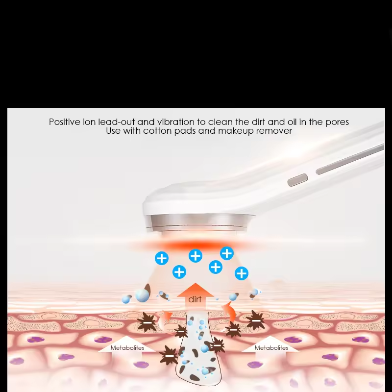 and negative attraction of vibration + red light + ion microcurrent to deeply clean cosmetic