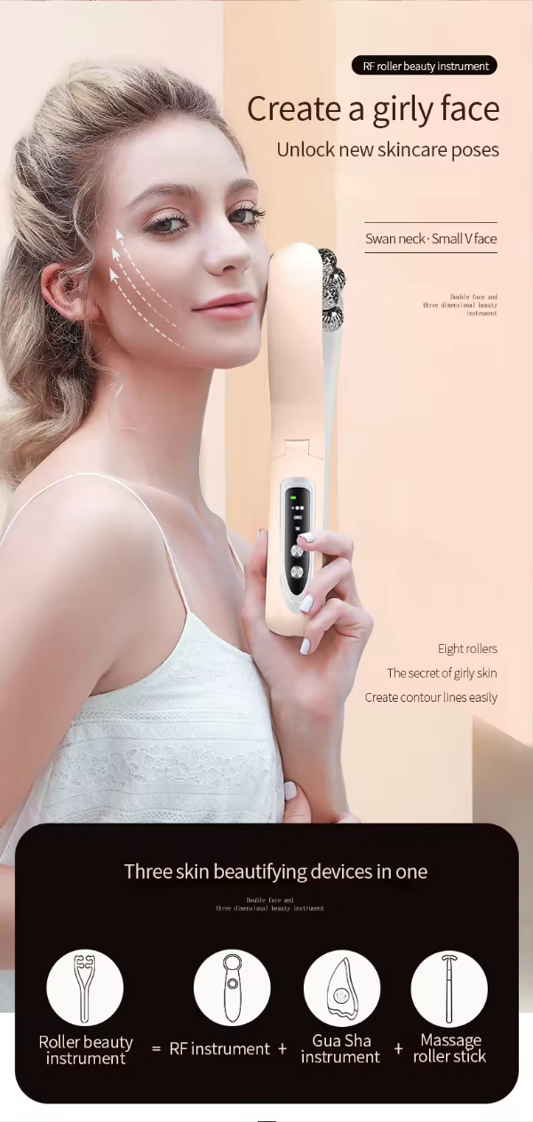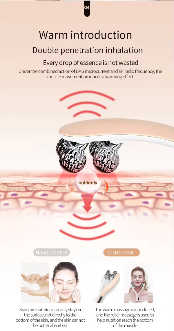 3、V symmetrical lifting, face-fit roller design, slowly lift and “roll” your face V shape