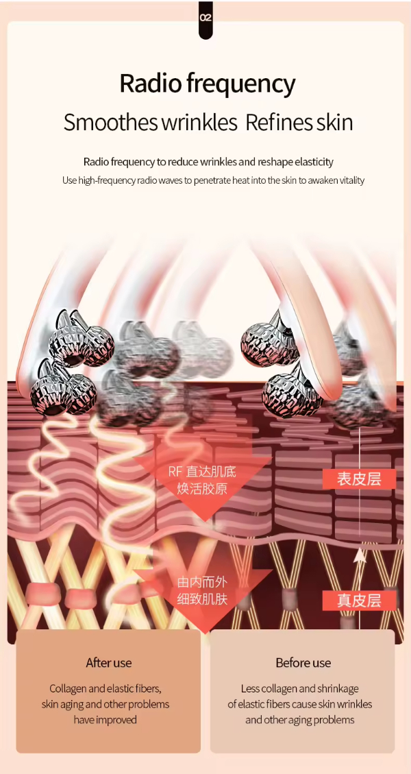 2、RF( radio frequency), reducing wrinkles and eyeline.