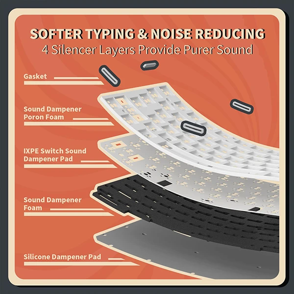 | Structure | Gasket structure + PC positioning plate + PCB single button slotting + power display + south facing led |