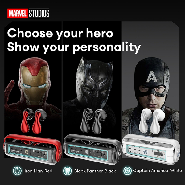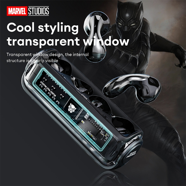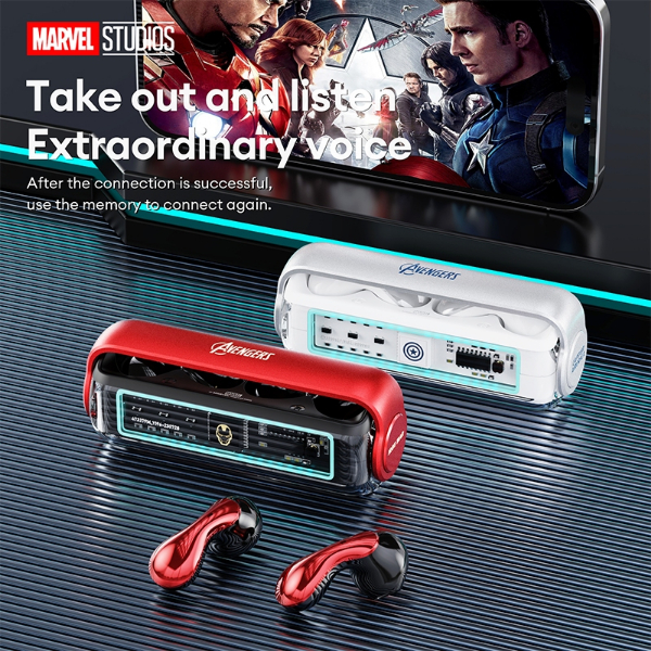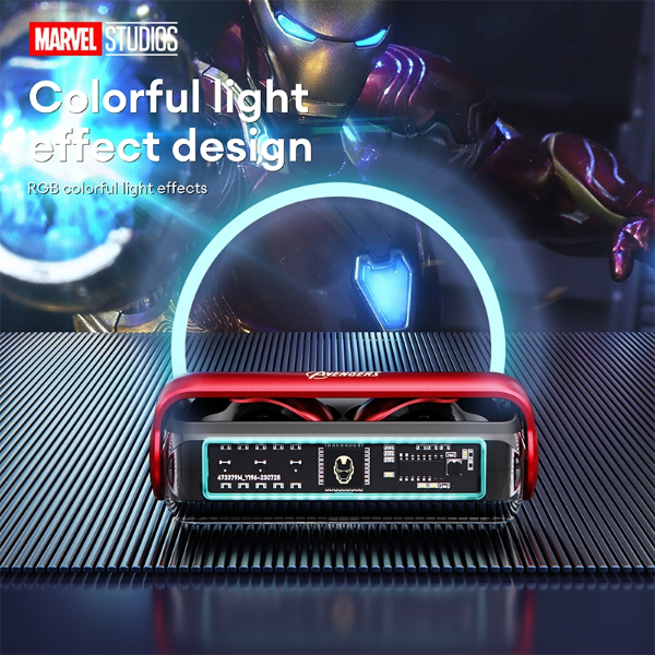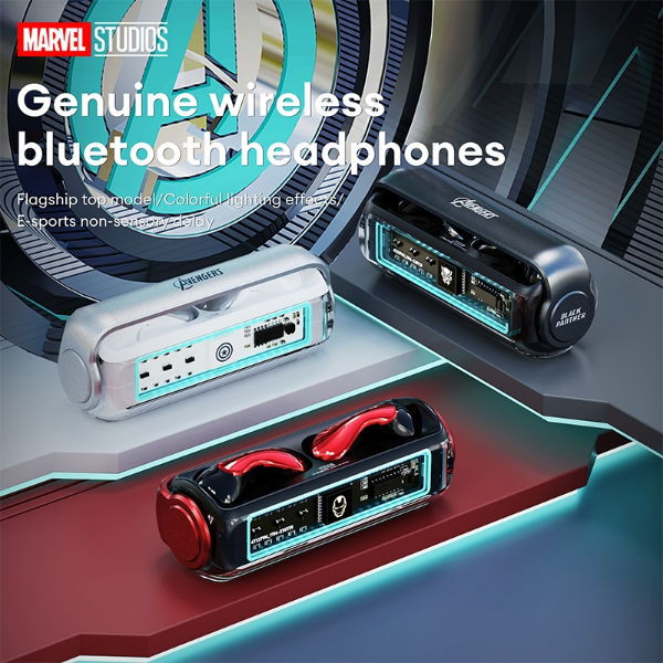 | Product Name: True Wireless Bluetooth Earphones (Iron Man) Product model: BTMV30 Product size: 86.6 * 28.9 * 32.8 millimeters Product material: ABS+PC+zinc alloy Bluetooth version: V5.3 Transmission distance: 12 meters Frequency response range: 20~20000 Hz Call usage time: approximately 4 hours Charging time: approximately 1.5 hours Charging interface: Type-C Executive standard: GB 8898-2011 Product:BTMV30 Frequency Range:20HZ-20KHZ Bluetooth:Bluetooth 5.3 Bluetooth Transmission distance:8-10M Speaker impedance:16±15% Speaker sensitivity:104DB Charging interface:TYPE-C Charging compartment battery capacity:500MAH Headphone battery capacity:40 mah*2