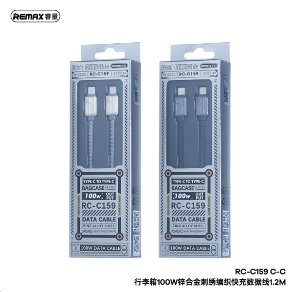 REMAX Bagcase Series 100W Zinc Alloy Braided Fast Charging Data Cable RC-C159 C-C 1.2M