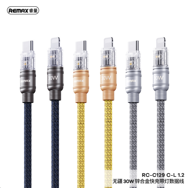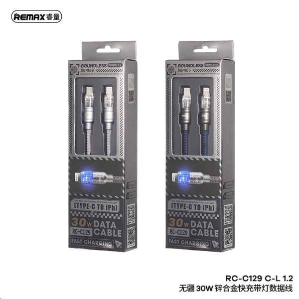 REMAX Boundless Series 30W Zinc AlloyRC-C129 C-L 1.2M Fast Charging Data Cable with Light
