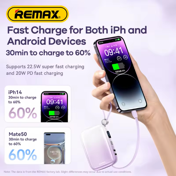 REMAX Iceydy Series PD 20W+QC 22.5W Cabled Fast Charging Power Bank 10000mAh RPP-652