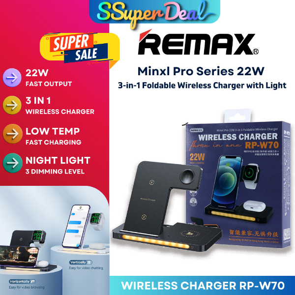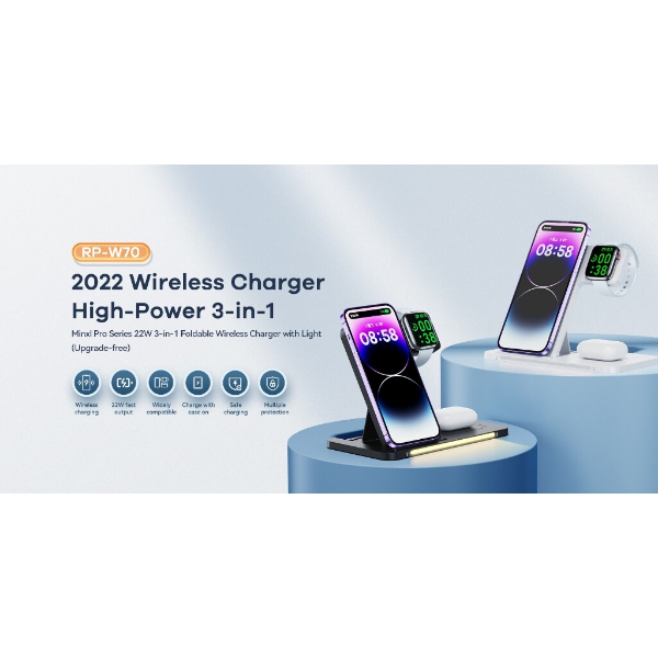 Remax RP-W70 Minxl Pro Series 22W 3 in 1 Foldable Wireless Fast Charger with Light