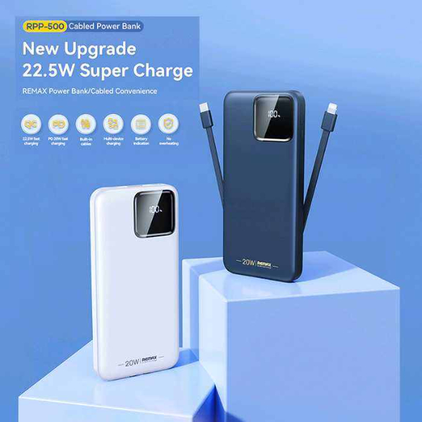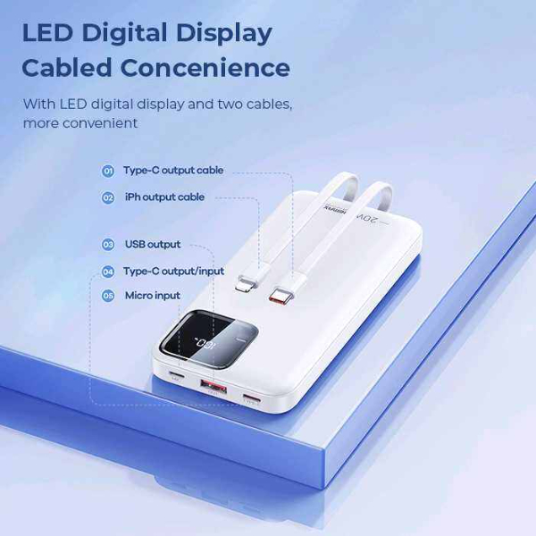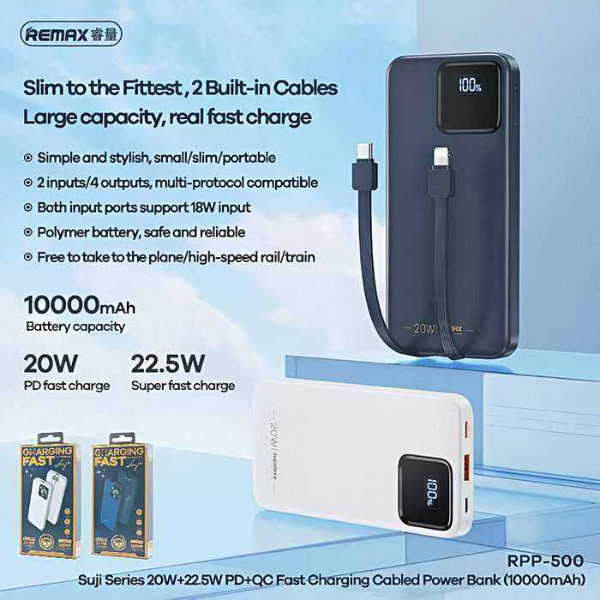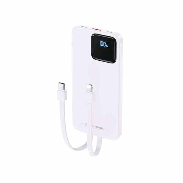 REMAX POWER BANK 10000MAH PD+QC SUJI SERIES RPP-500 WHITE / RPP-500-WH - 3 Outout USB + Kabel Type-C & Lightning | 2 Input Micro USB & Type-C Indikator Baterai Digital Garansi