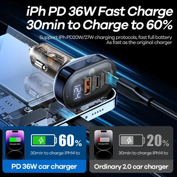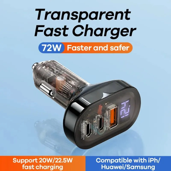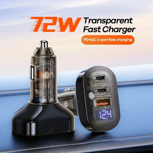 REMAX RCC351-Cybo Series 72W PD+QC Transparent Fast Car Charger with Digital Display RCC351