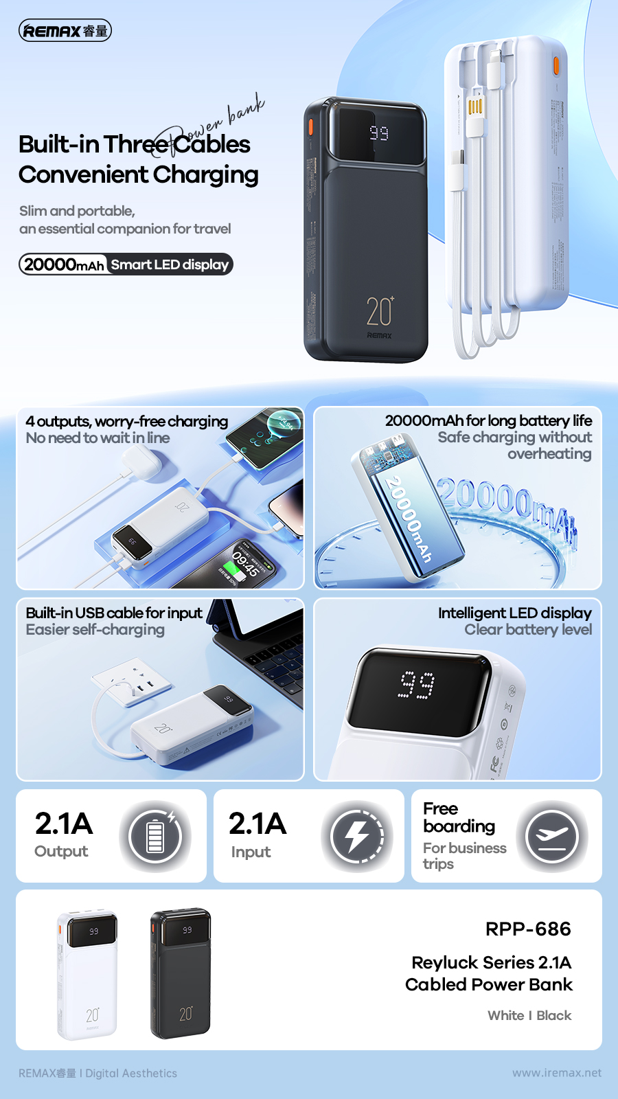Built-in Type-C Cable Output: 5V/2.1A(Max)