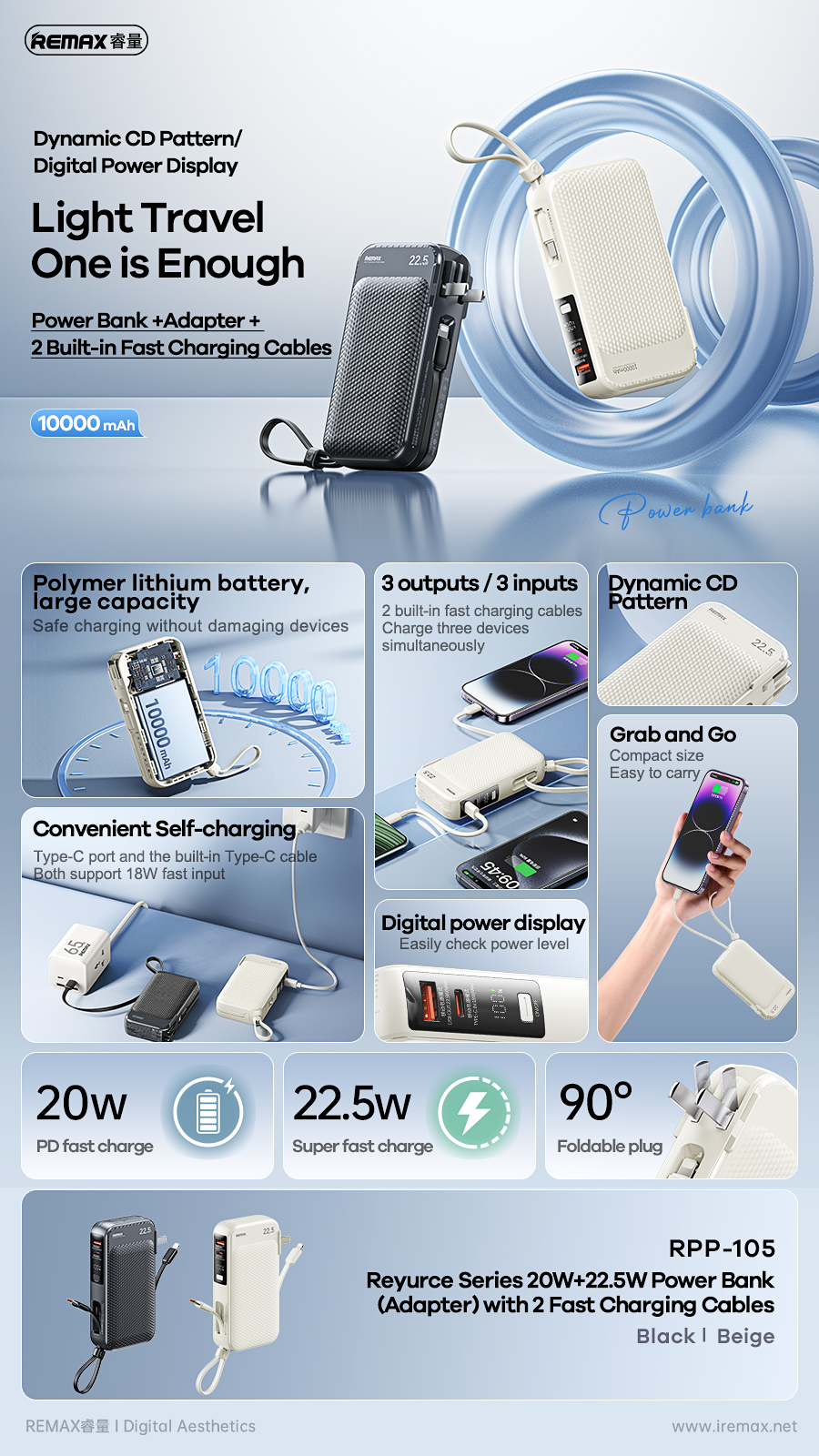 1.2-in-1 charger + power bank; Dynamic CD pattern, leading the fashion trend