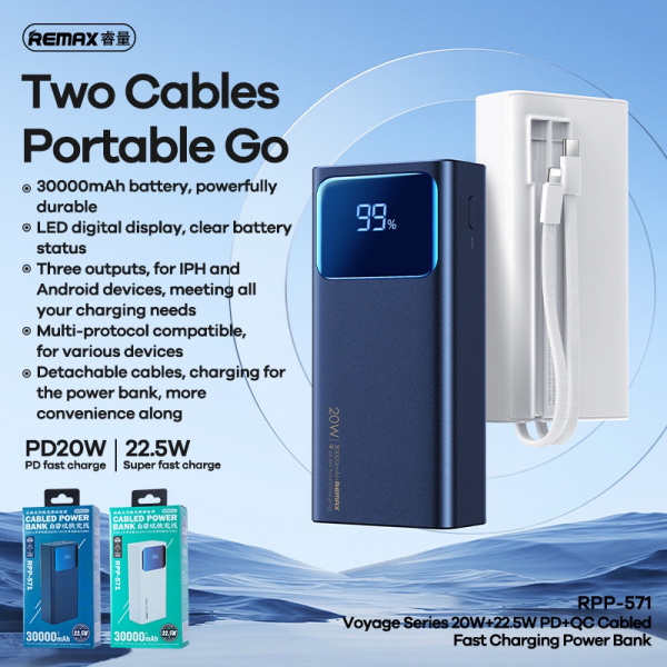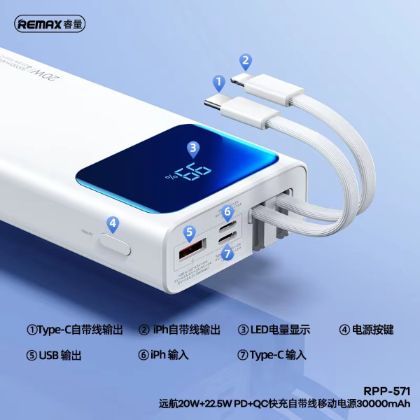 REMAX RPP-571 22.5W 30000mAh Powerbank / PD 20W + QC 22.5W Super Fast Charging / Digital Display