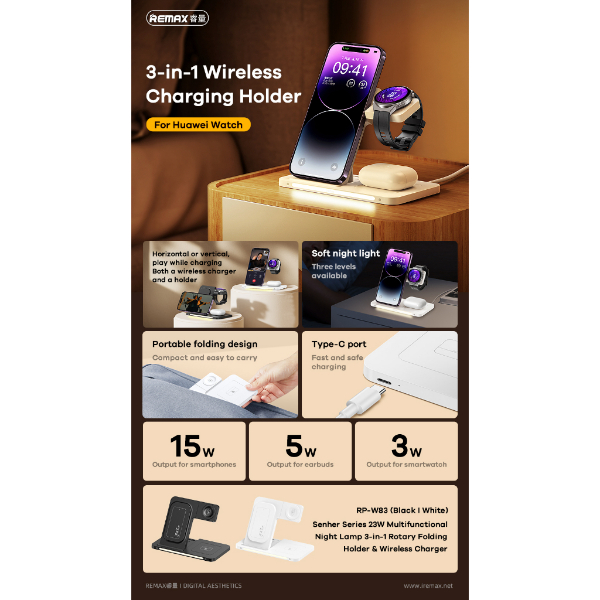 Output voltage and current: Mobile phone -5W/7.5W/10W/15W, iPhone 5W, Watch 3W