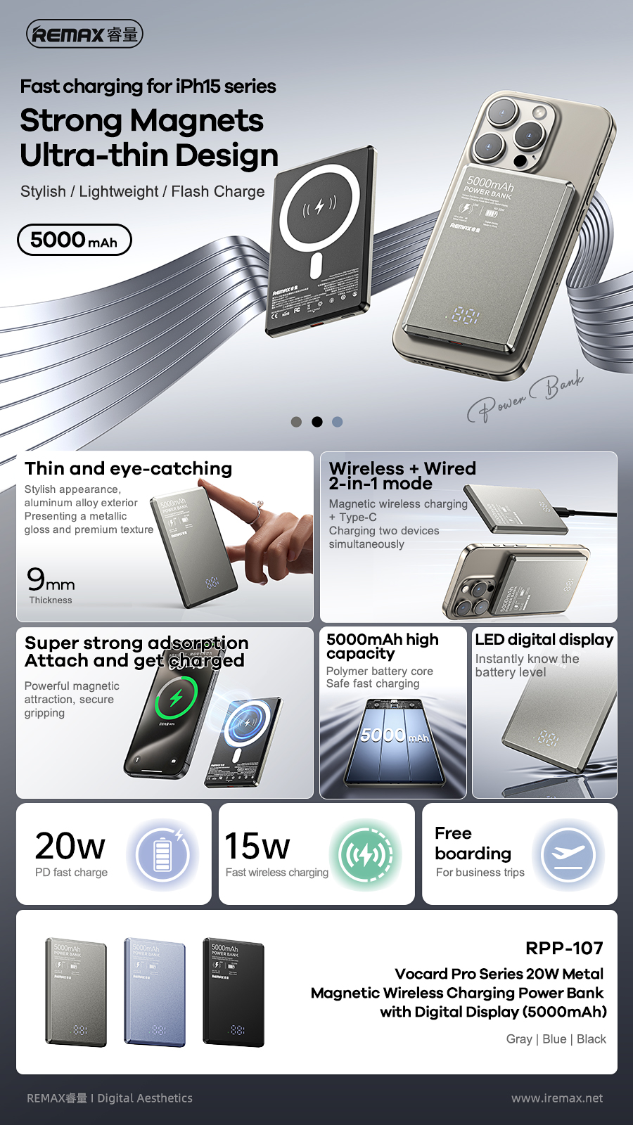 2.Powerful magnetic attraction, attach and get charged; LED digital display, easily check the battery level