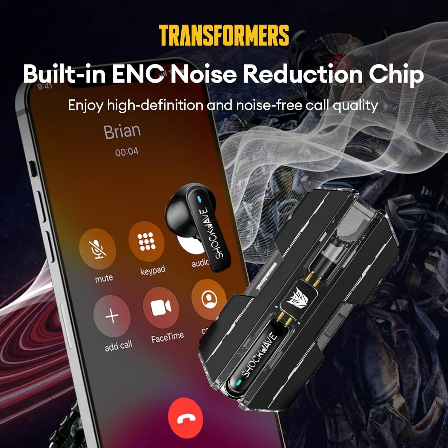 Transformers TF-T01 True Wireless Earbuds Bluetooth 5.4 Headphones Bass Stereo Earphones, Bluetooth Earbud in Ear Noise Cancelling Mic, 60H Playtime Ear Buds, IPX5 Waterproof Earphones for Android iOS