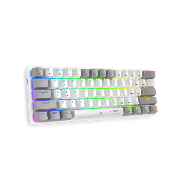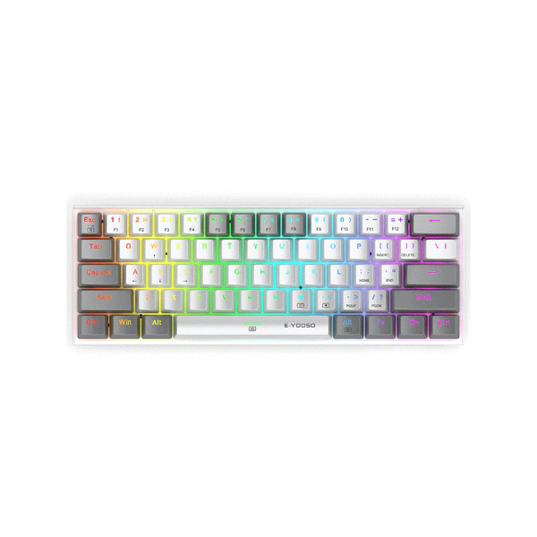 Ergonomic Mechanical Keyboard: E-YOOSO 60% keyboard is a mechanical keyboard with the scientific stair-up keycap design brings maximum comfort, keeping your hand in a most natural state to minimize hand fatigue after longtime use and help you minimize typos. So it's designed for gamer, office worker, copywriter, programmer, typing teacher and editors.